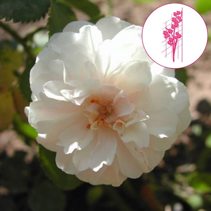Rosier liane 'FELICITE ET PERPETUE' (X de Sempervirens) Jacques, 1827. Feuillage sain, presque persistant. Fleurs pleines blanches et parfumées. Supporte la mi-ombre. Non remontant. Hauteur : 5 m.